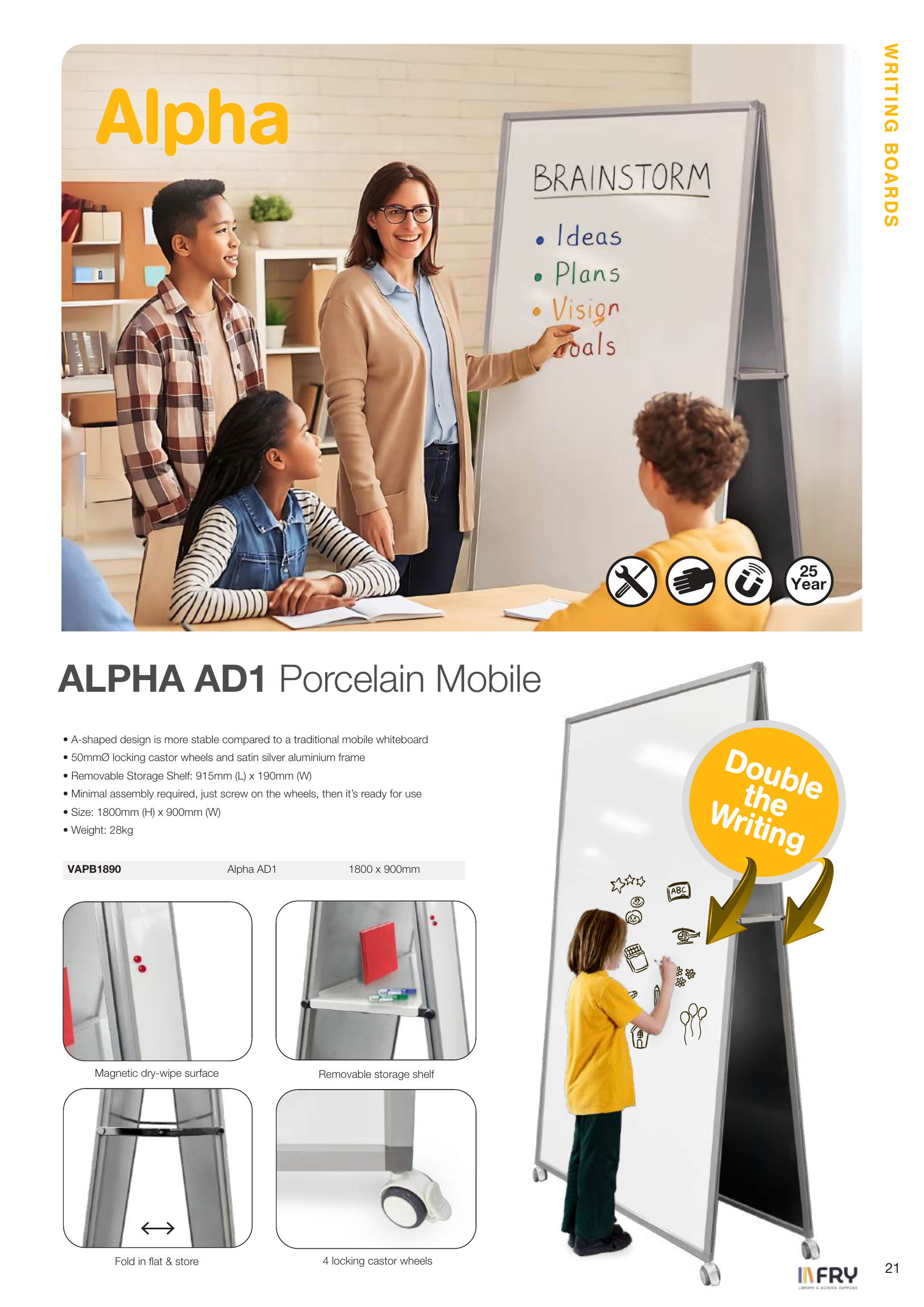 • A-shaped design is more stable compared to a traditional mobile whiteboard