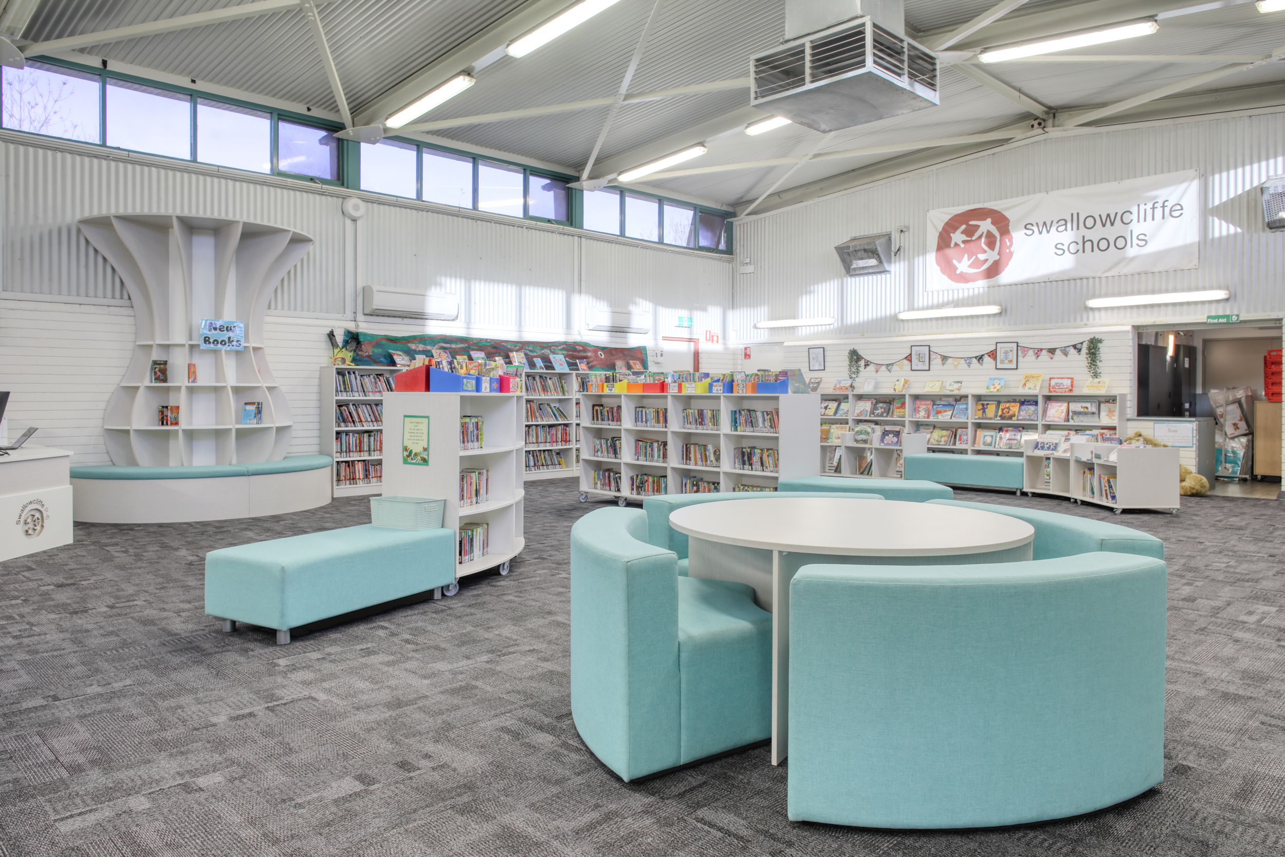 Create a functional and inviting gathering space with this stylish round table set, designed for collaborative learning and flexible use in libraries, classrooms, or common areas.