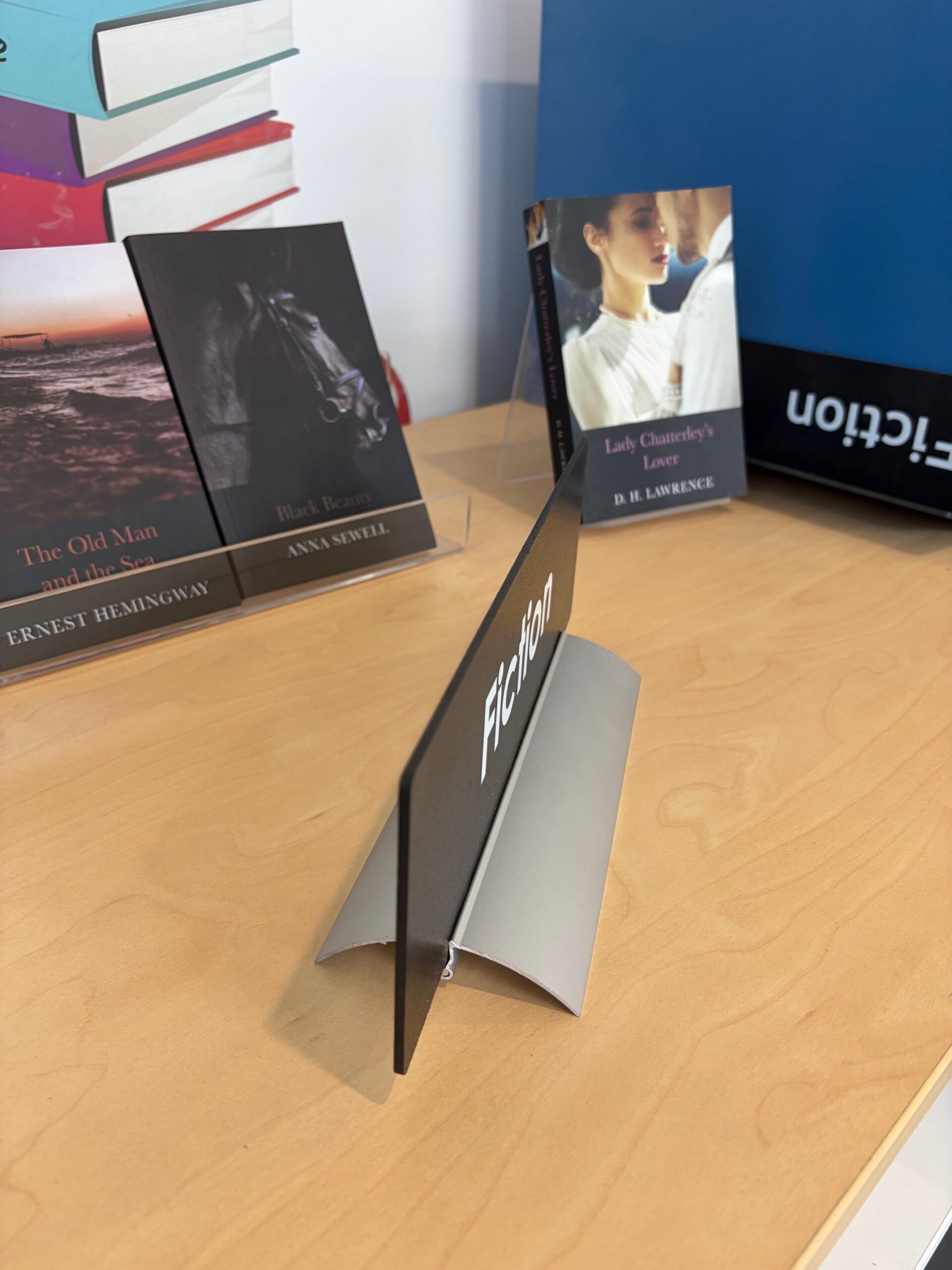 Enhance your display with high-quality category signage that catches attention and helps guide readers effortlessly. These signs are designed to sit neatly on top of your shelving or spinner units, clearly marking categories and improving browsing flow.